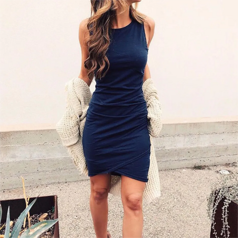 Women's Stylish Round Neck Slim Irregular Sleeveless Dress